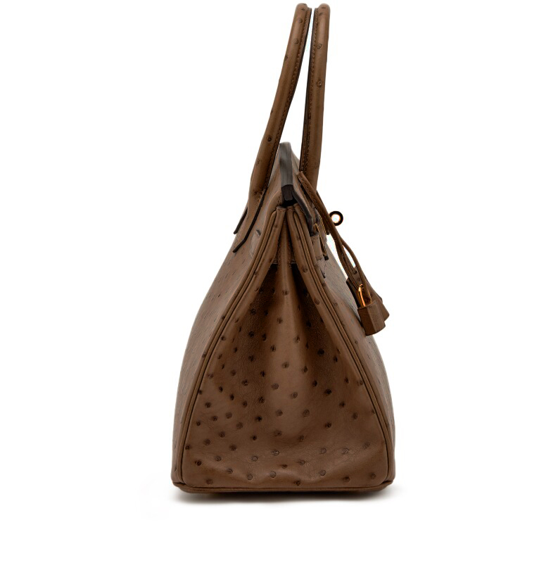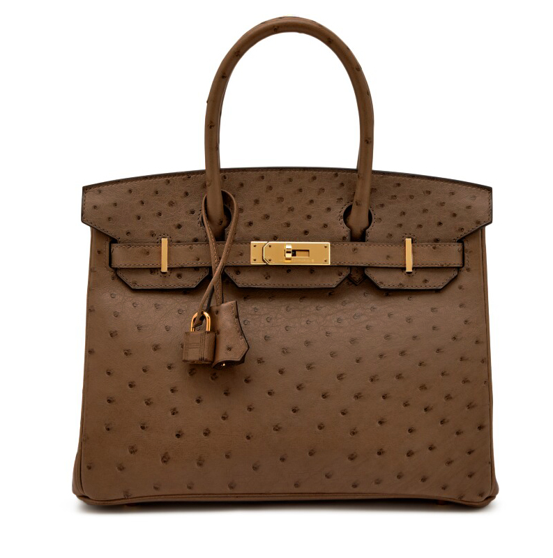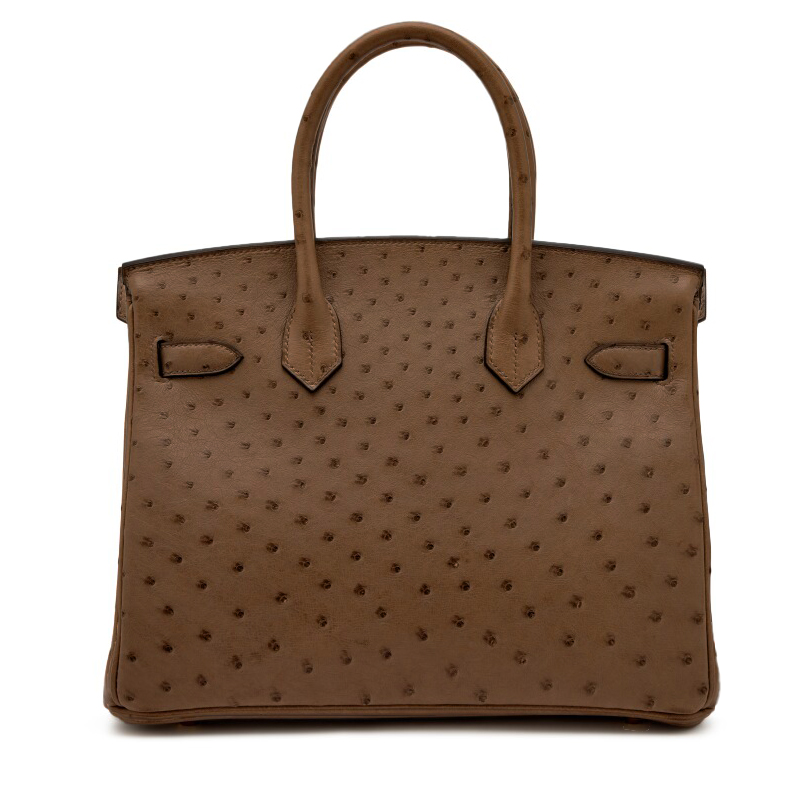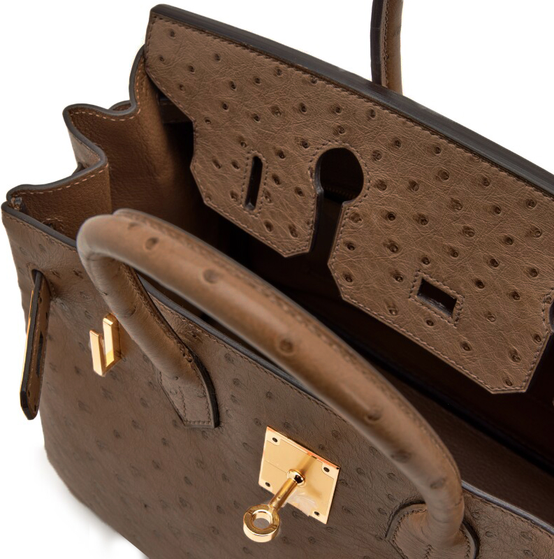 حقيبة بيركن باللون البني بنقشة جلد النعامة
